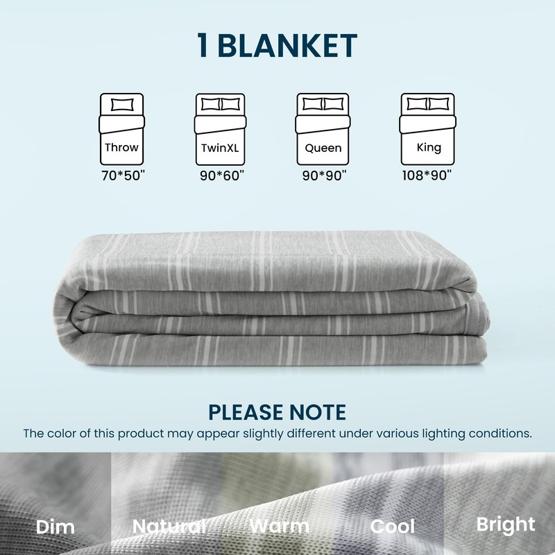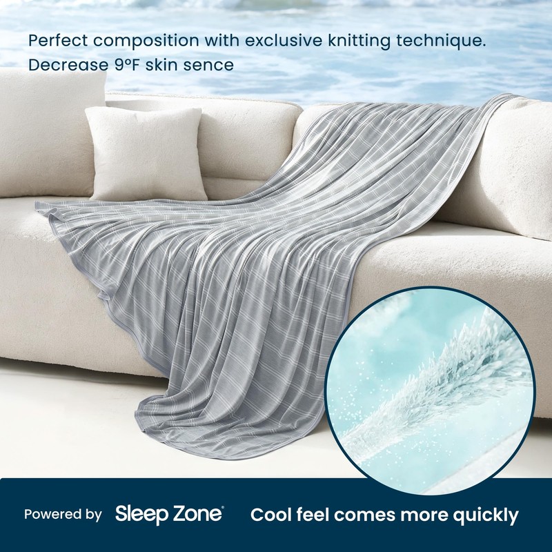SLEEP ZONE Cooling Blankets for Hot Sleepers, Summer Blanket Thin Lightweight for Bed Couch, Arc-Chill Q-Max 0.5 Cooling Throw Blanket on Night Sweats (Grey Stripe, 50''x70'')