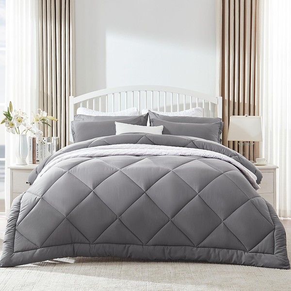 SLEEP ZONE Full Size Comforter Duvet Insert, Down Alternative Reversible Comforter, Lightweight, Soft and Breathable Bedding All Season, Diamond Quilting Grey