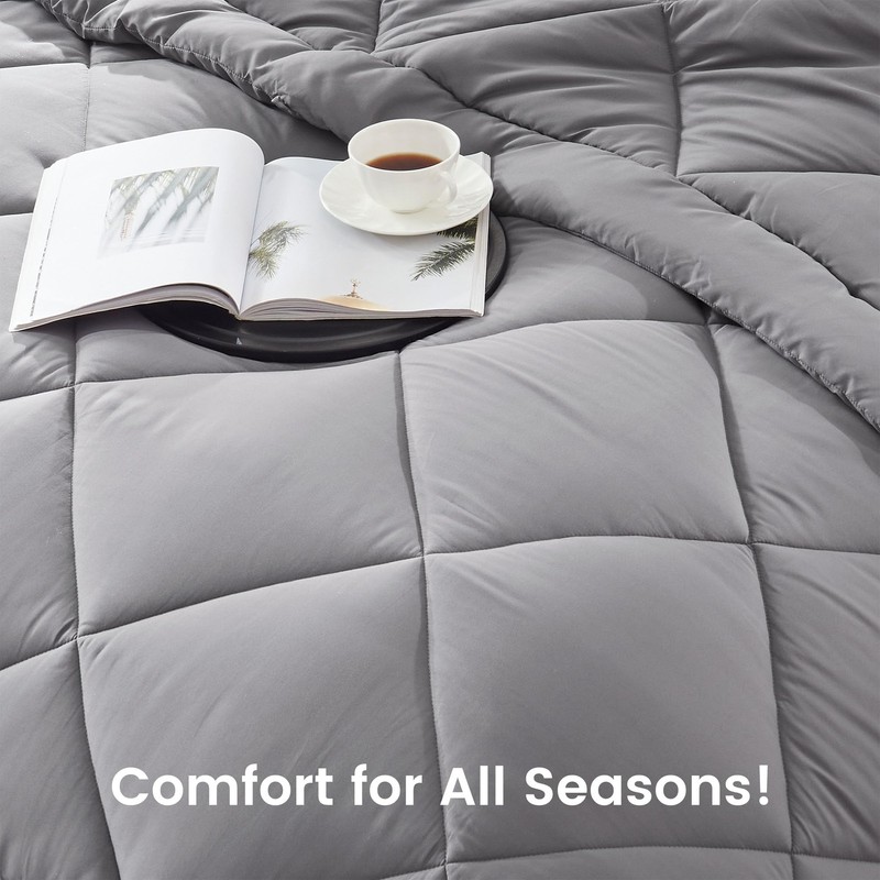 - ALL SEASON COMFORT - The fabric is 120gsm thick double-brushed microfiber and the filling is down alternative polyester. This comforter is high quality and breathable, warm in winter and cool in summer for year round comfort.