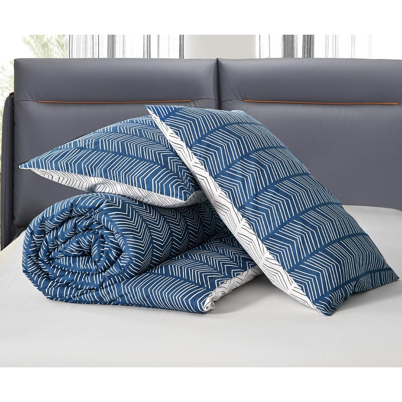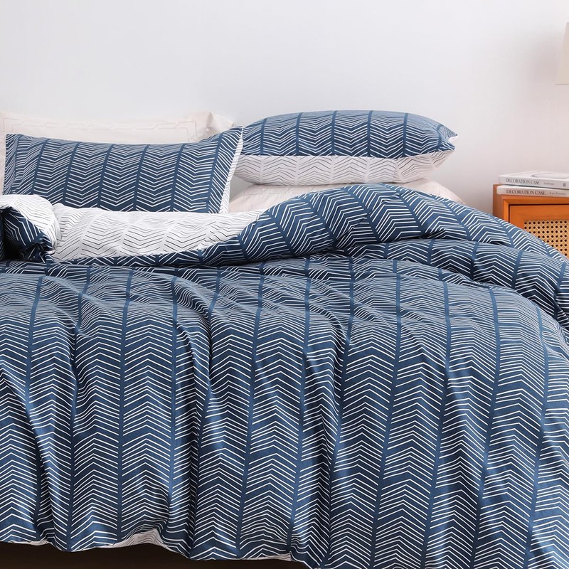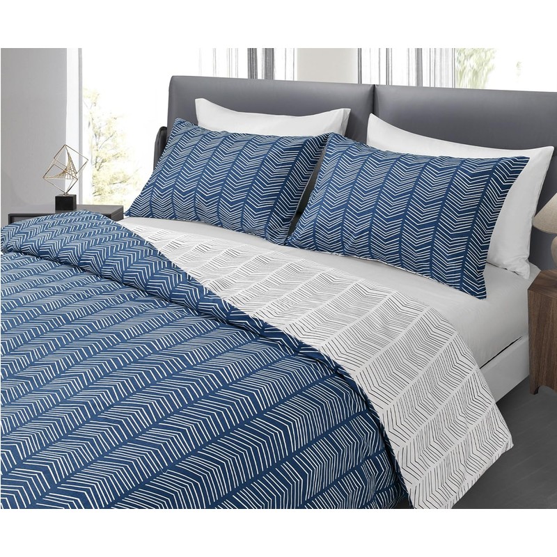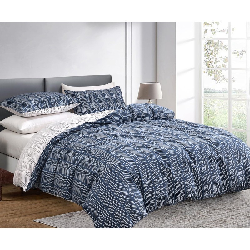 • ★REVERSIBLE DESIGN –Fancy Pattern: White and navy geometric patchwork print on the one side, and grey shade color prints on the other side. Elegant geometric printed pattern infuses your space with harmony and brings you calm and comfort; Stylish Box-Stitching: It will keep the duvet insert from shifting or clumping in order to keep you feel more comfortable during sleep. (Be aware that there might be different fringe orientations of pillow shams between different batches.)