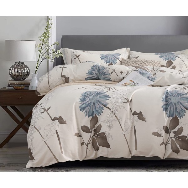 SLEEPBELLA Duvet Cover Full Size, 600 Thread Count Cotton Botanical Flowers Pattern Printed Reversible Comforter Cover