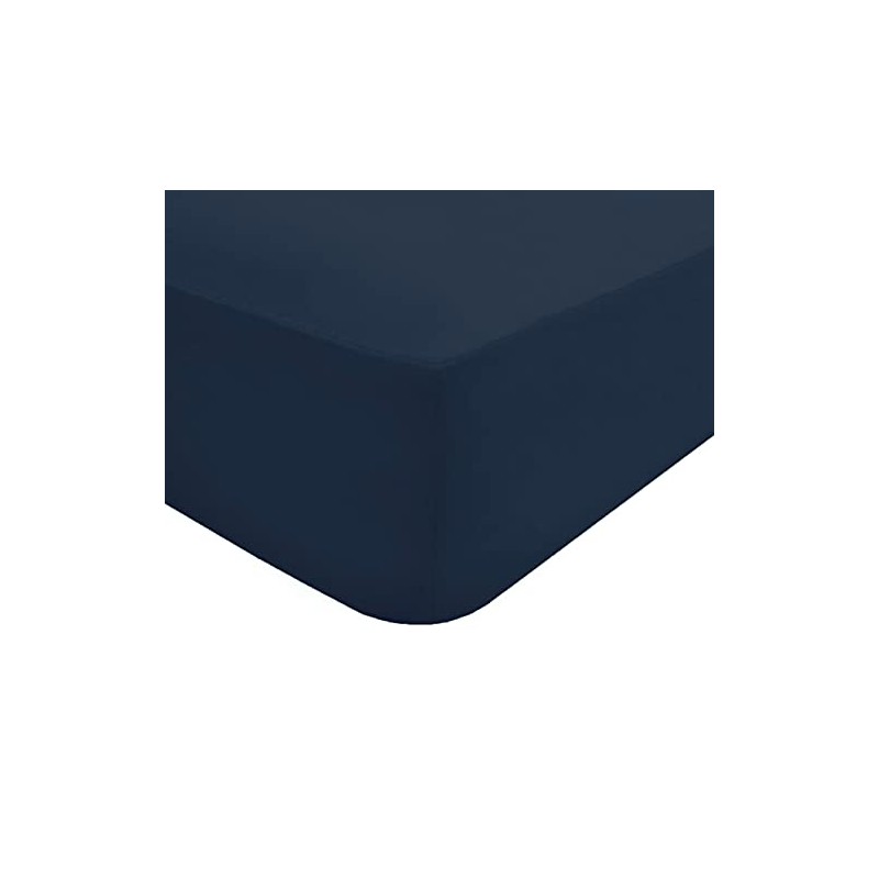 Sleepdown Fitted Sheet Polycotton Easy Care Non-Iron Super Soft Deep Pocket Bedsheet Bed Linen, Double, Navy, 10 Inch, 25 cm