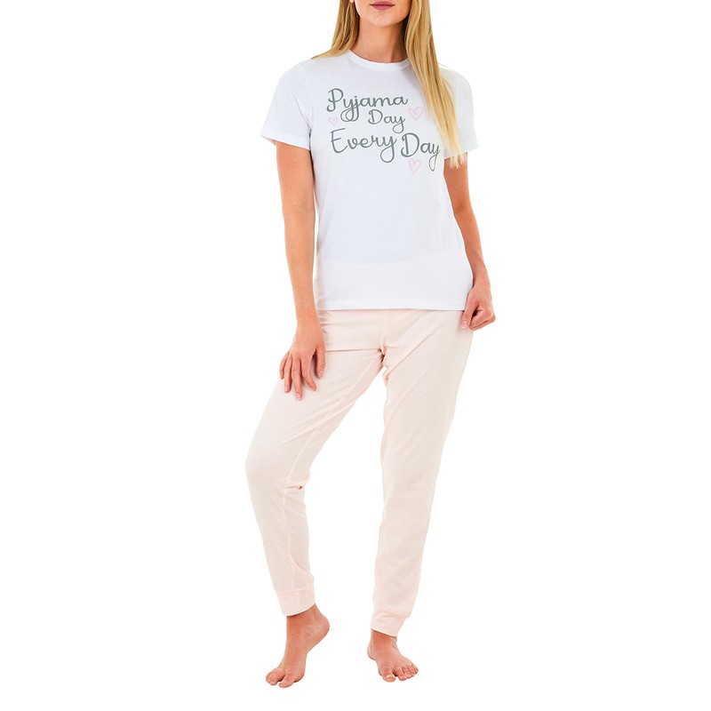 Sleepdown Women's Every Day Pyjamas Set Pajama, White Pink, XL
