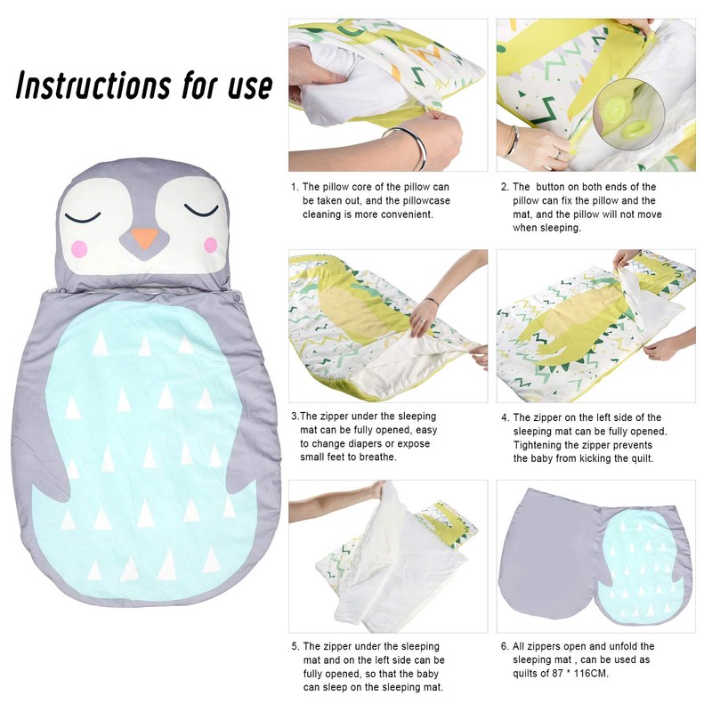 - 3-in-1 nursery sleeping bag: The quilt, blanket and pillow are three-in-one, which is more comfortable to wear than the conventional bedding set and is better suited for the use of younger babies in multiple places.