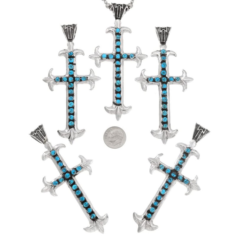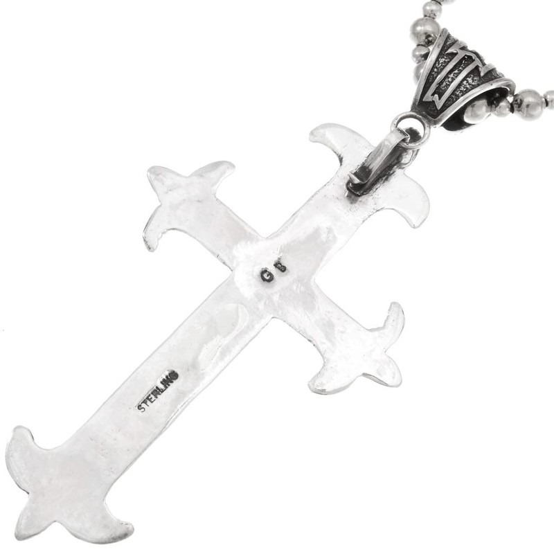 Sleeping Beauty Turquoise Navajo Cross Sterling Pendant With Silver Bead Necklace 0093