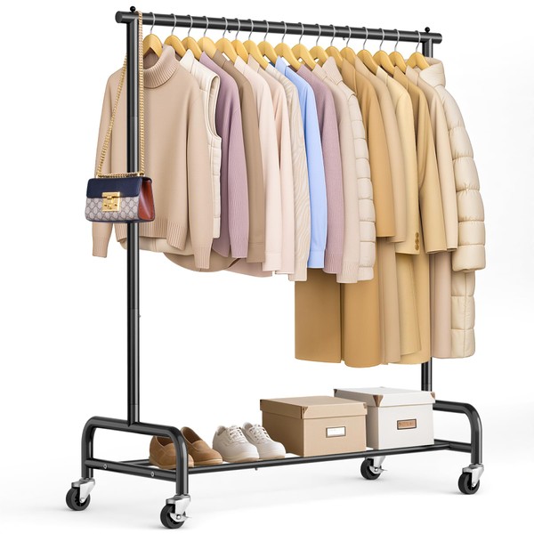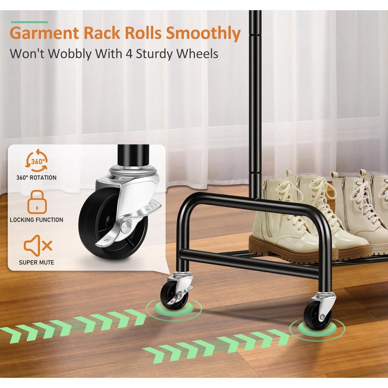 SLEEPING LAMB Heavy Duty Clothing Racks for Hanging Clothes Rack, 43" Wide Rolling Garment Rack Metal Clothing Hanger Rack with Wheels Wardrobe Rack for Coats, Shirts, Dress, (Black)
