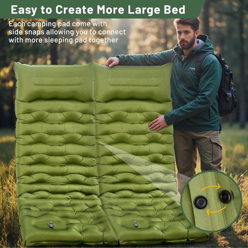 - Enjoy Upgrading Twin Sleeping Pad:Our camping bed mat has a connecting buckle on the side, which allows you to easily connect another one to make a double bed or larger camping mat, making you sleep more comfortably. It is perfect for camping with family and friends and is a great gift for friends or family. If you have any problems with the hiking sleeping pad, please feel free to contact us. Our professional customer service will make every effort to ensure your satisfaction.