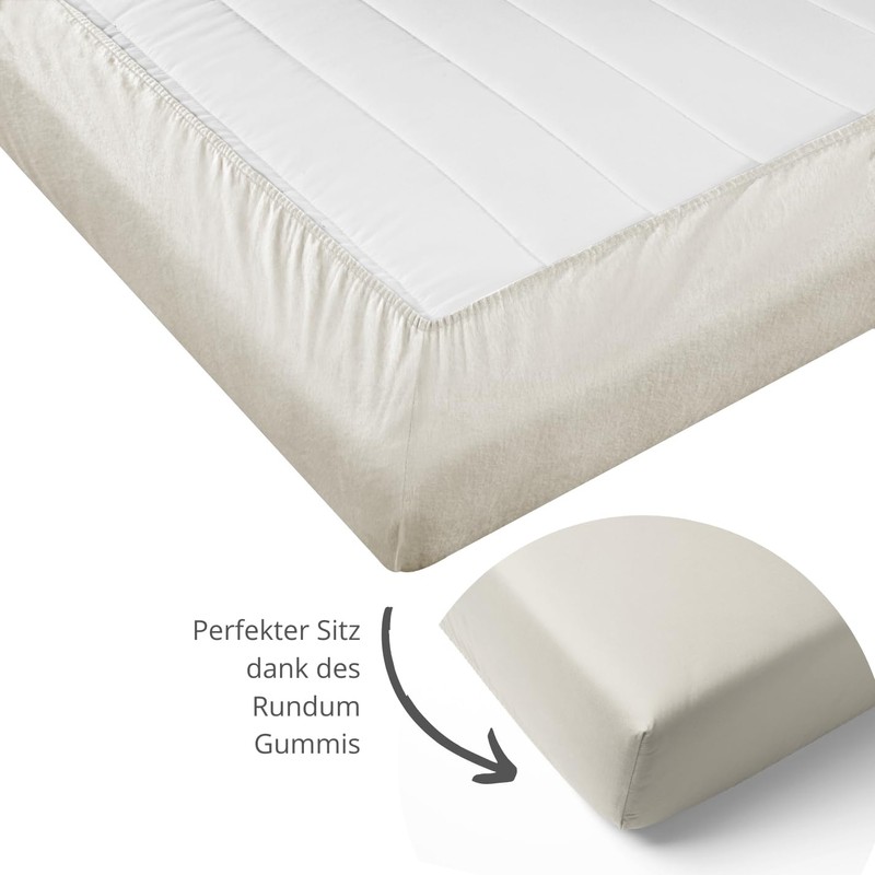 • Quality: The sheet has an elasticated hem for practical and easy fitting. This is unlike others, that often only have corner rubbers or rubbers at the head and foot end. Thanks to the all-round elastic band, the sheet fits tightly and wrinkle-free on the mattress. High quality, made in Germany. For the highest standards of quality and sustainability.