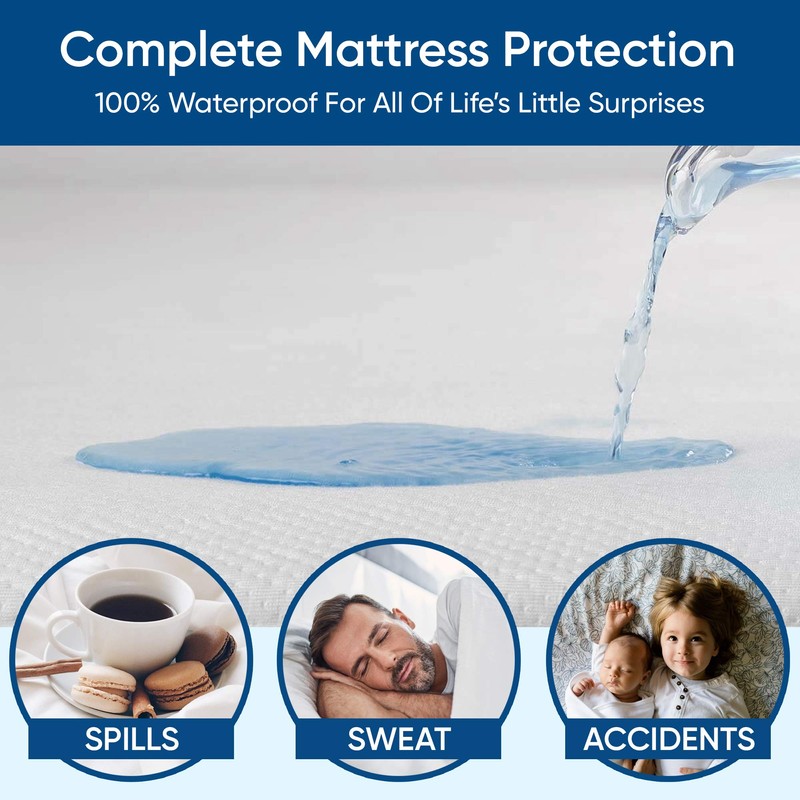 **Sleep Better Knowing Your Mattress is Protected** Keep your mattress feeling brand new with our 100% waterproof mattress protector. The ultra soft Tencel top is hypoallergenic and eco-friendly. The Liquid Shield Membrance protects your mattress from spills, stains and accidents!