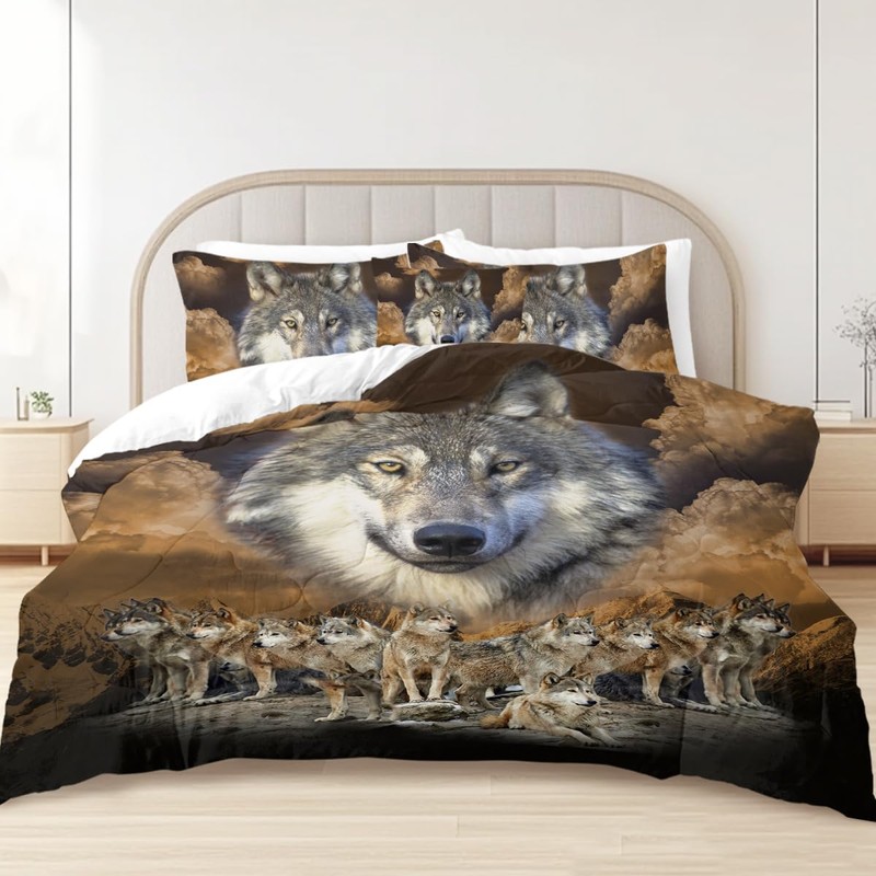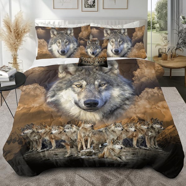 Sleepwish Gold Wolves Comforter Set Twin Size Bed Set 4 Piece Dark Clouds Wolf Leader Bedding Set with Comforter, Pillow Shams, Cushion Cover (King)