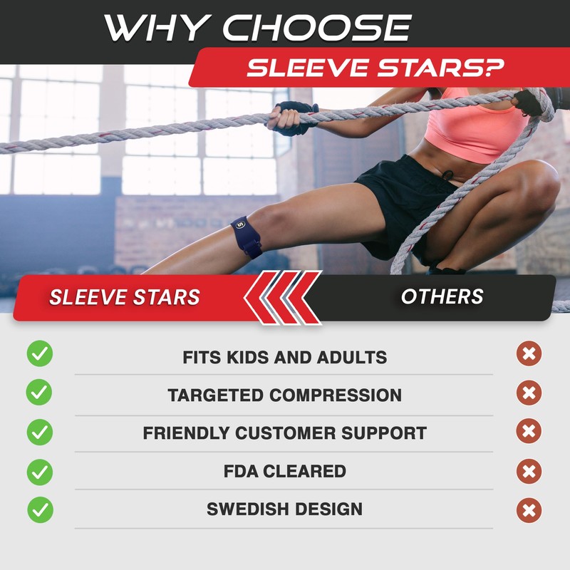 Sleeve Stars Patellar Tendon Support Strap Osgood Schlatter Knee Brace for Youth, Women & Men, Swedish Brand Patella Knee Strap for Arthritis & Pain, Patella Band w/ 3 Lengths (Navy Blue) | SS SLEEVE STARS
