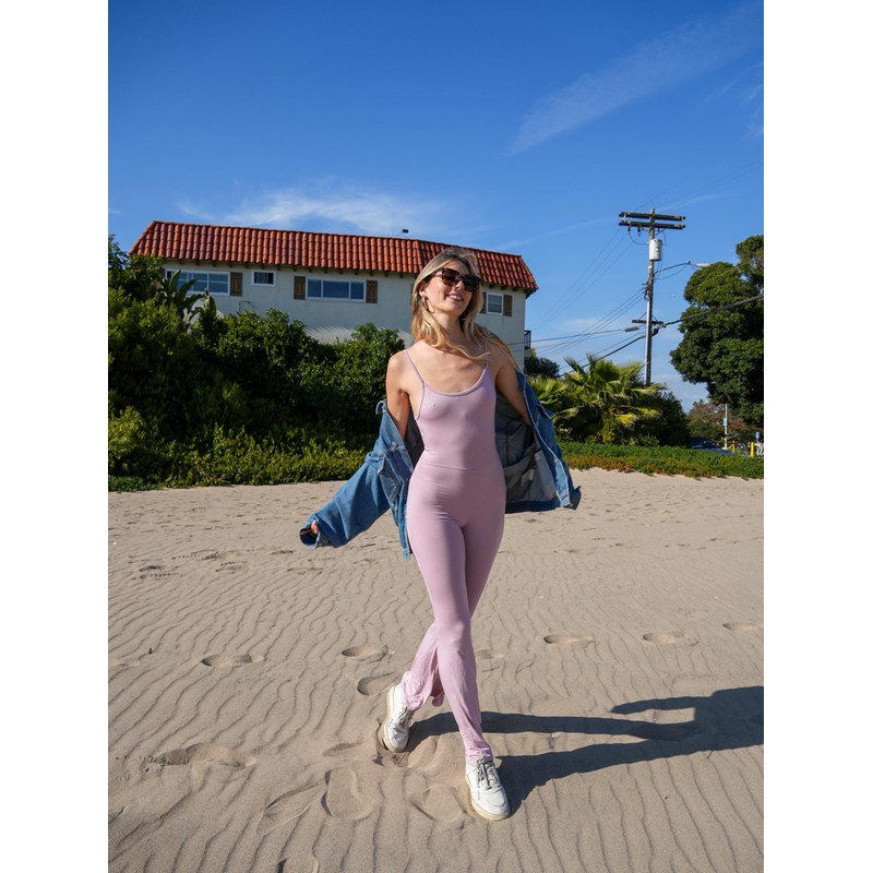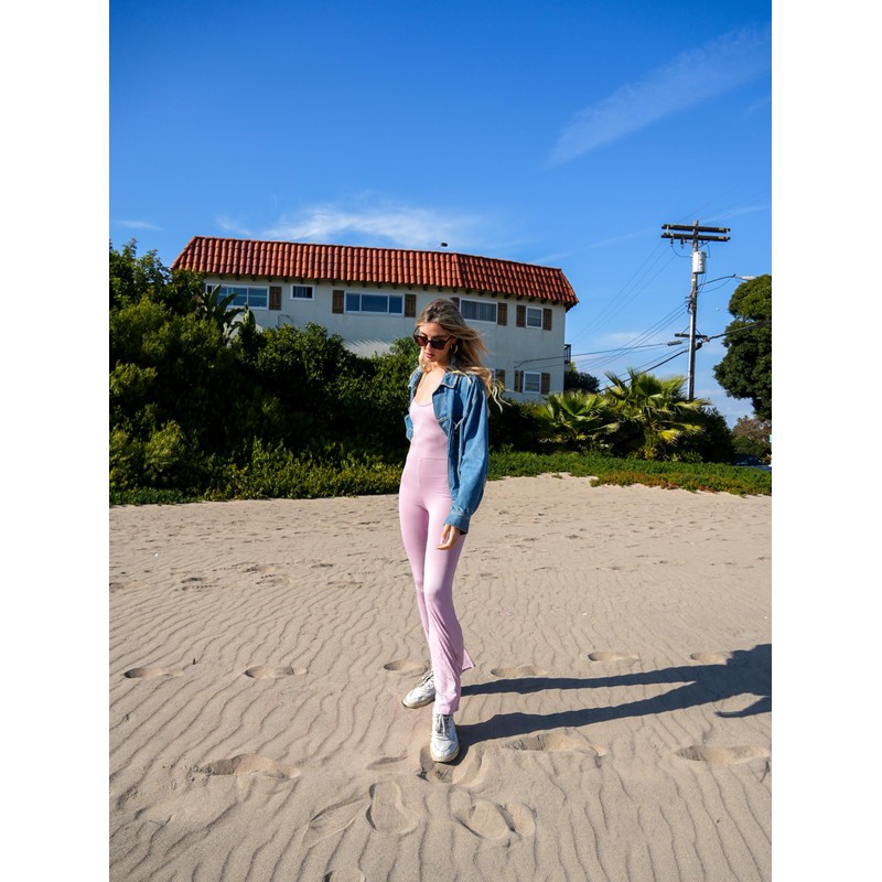 Sleeveless Flared Leg Bodycon Jumpsuit with Adjustable Strap - Full Length Unitard Bell Bottom One Piece Jumpsuit Pink Small