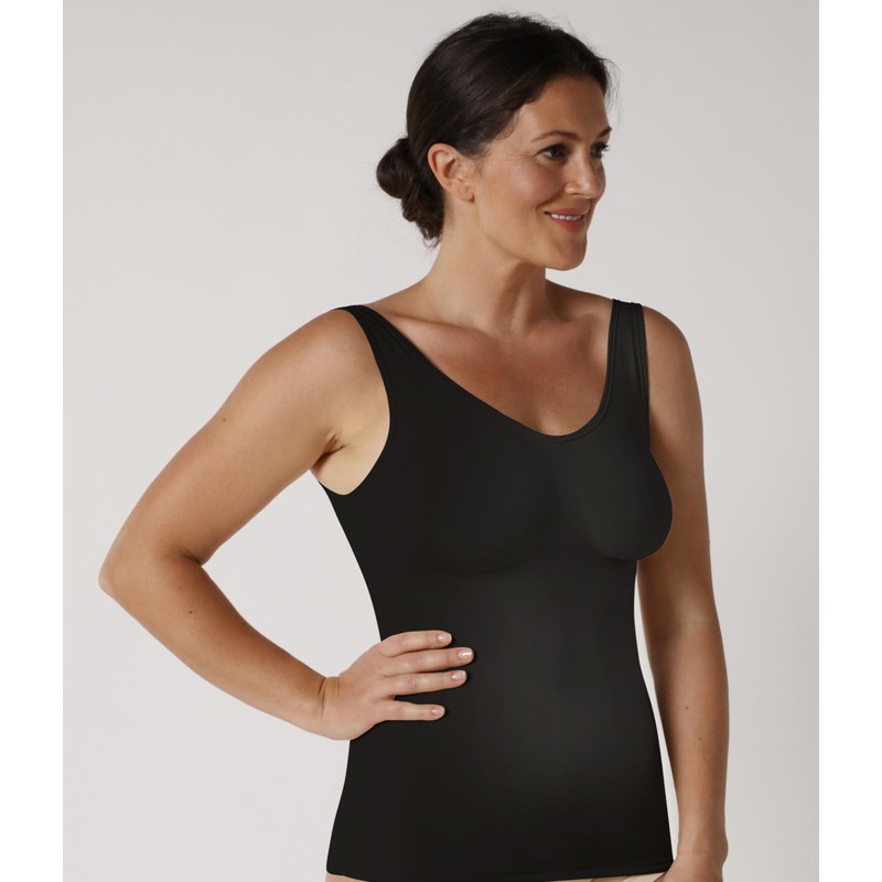 The perfect figure-shaping women's undershirt for a smoother, slimmer silhouette. Compression zones shape the waist and stomach. Soft, luxurious material ensures comfortable wearing and impeccable appearance. Wide comfort straps, light push-up effect thanks to integrated reinforced underbust waistband.