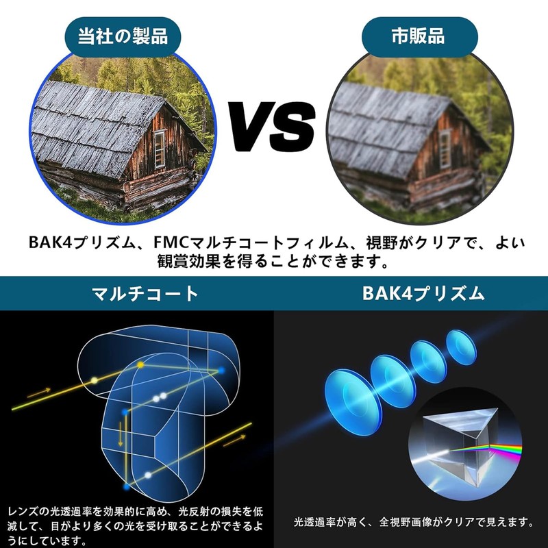 - [Farther Viewing Distance, Wide Viewing Range, Clear and Transparency] Our binoculars use 8x magnification, eyepiece diameter 0.5 inch (13.2 mm), angle of view 7.2°, and BAK4 prism materials. Farther field of view, high visual effect, long time use without dizziness, comfortable and clear (99.98% light transmission) no dark edges. You can get excellent visibility even at dusk, cloudy or foggy days