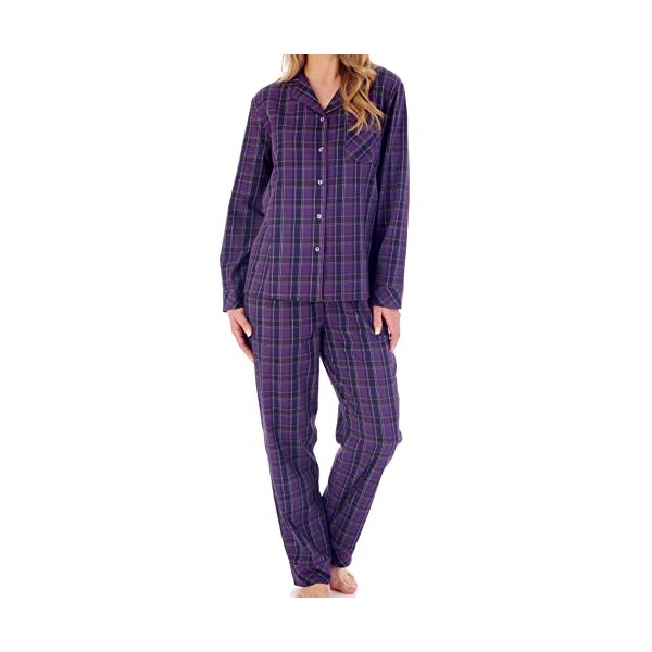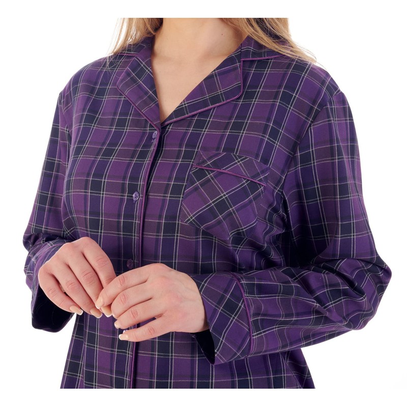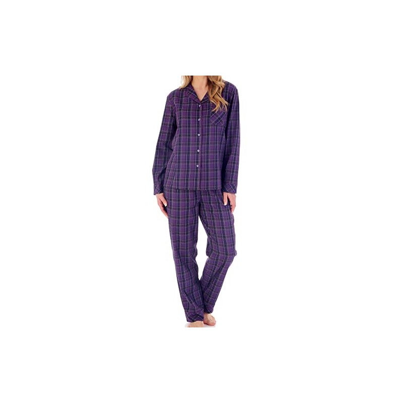 Slenderella Ladies Purple Check Pyjamas Button Up Top & PJ Bottoms Yarn Dyed Cotton Set (UK 16/18)