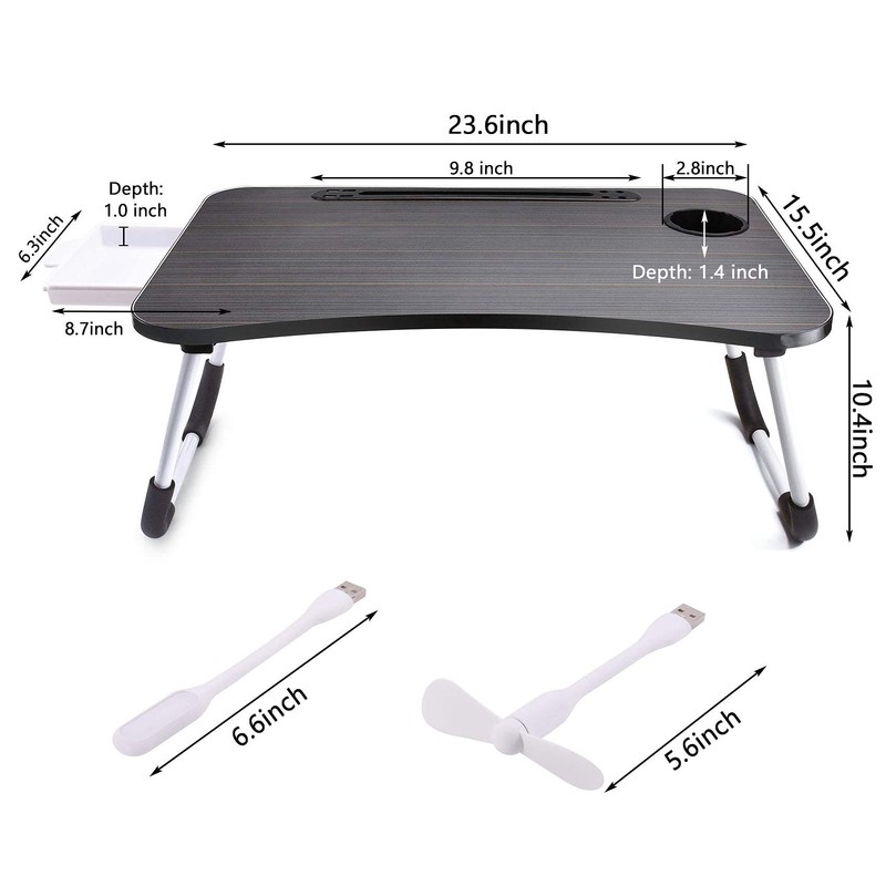 - ✅【Multiple Uses】The foldable laptop desk does not need to be installed and can be used directly when opened. Product size: 23.6 inch x 15.5 inch x 10.4 inch. The laptop portable desk is very practical, you can put it on the bed, couch, or on the floor, when you go out camping, you can also bring the foldable laptop table, which can be used as a small picnic table. Especially the high-quality USB ports and drawers enhance the practicality of the laptop desk tray.