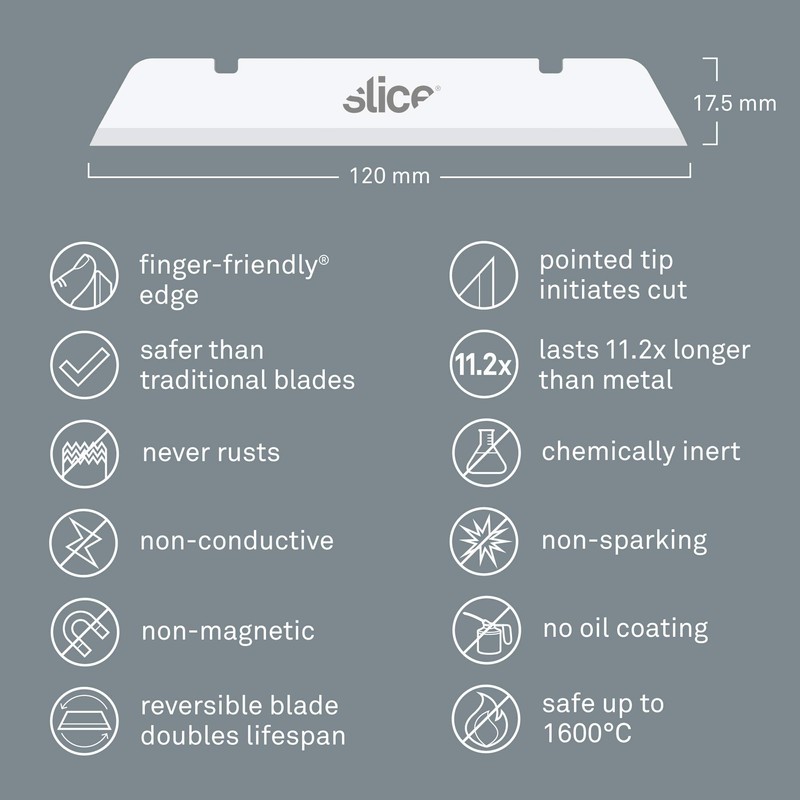 - REPLACEMENT BLADES: Slice industrial blades are designed to work exclusively with Slice handles for optimal safety and function – Slice Industrial Knives (#10559 and #10560) and the Slice Long Handled Scraper (#10599)