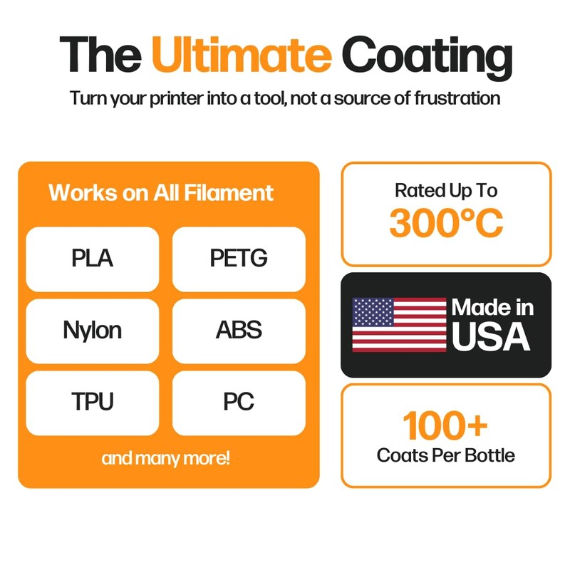 Got a sticky nozzle? Sick of plastic sticking to it all the time? Plastic Repellent Paint by Slice Engineering is the solution for you! Plastic Repellent Paint is a revolutionary, water-based, PTFE nanosuspension that repels plastic from the outside of your nozzle and hot block. Which is awesome, because it prevents that annoying plastic buildup that causes print failures! Plastic Repellent Paint can be applied in seconds using the vial's brush top, forming a dry, transparent coating that endures print temperatures up to 290C. Keep your nozzle clean with some high-tech space magic, and worry no more.