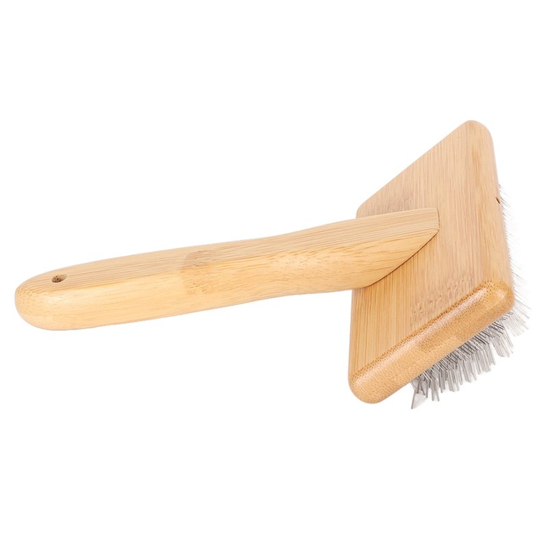 Slicker Brush Quick Brushing Easy Care Smooth Curves Fine Polished Macrame Slicker Comb Airbag Cushion Bamboo (L (6 x 4 Inches)