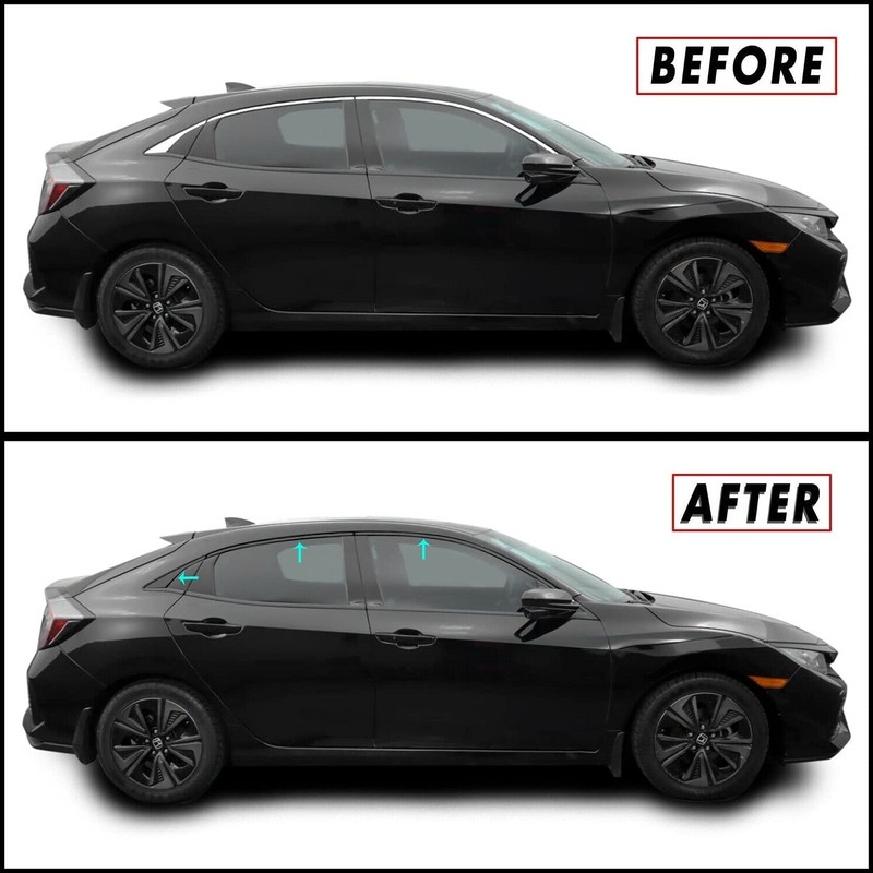 SlickMod Chrome Delete Blackout Vinyl Overlay for 2016-2021 Honda Civic Hatchback Window Trim (Satin Black)