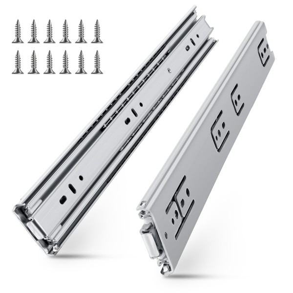 - 【Smooth & Stable】 Smooth opening and closing of full extension drawer slides with industrial grade ball bearings and durable ABS plastic rubber shock pad design for greater stability.
