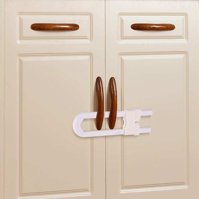 Sliding Cupboard Drawer Locks for Cabinet Knobs Handles U Shape Safety Lock for Children Baby Kids 6 Months - 6 Years