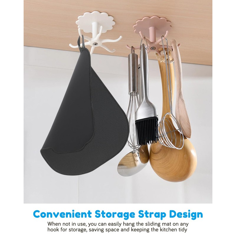• Convenient Storage Strap Design: Convenient strap design, when not in use, you can easily hang the sliding mat on any hook for storage, saving space and keeping the kitchen tidy.