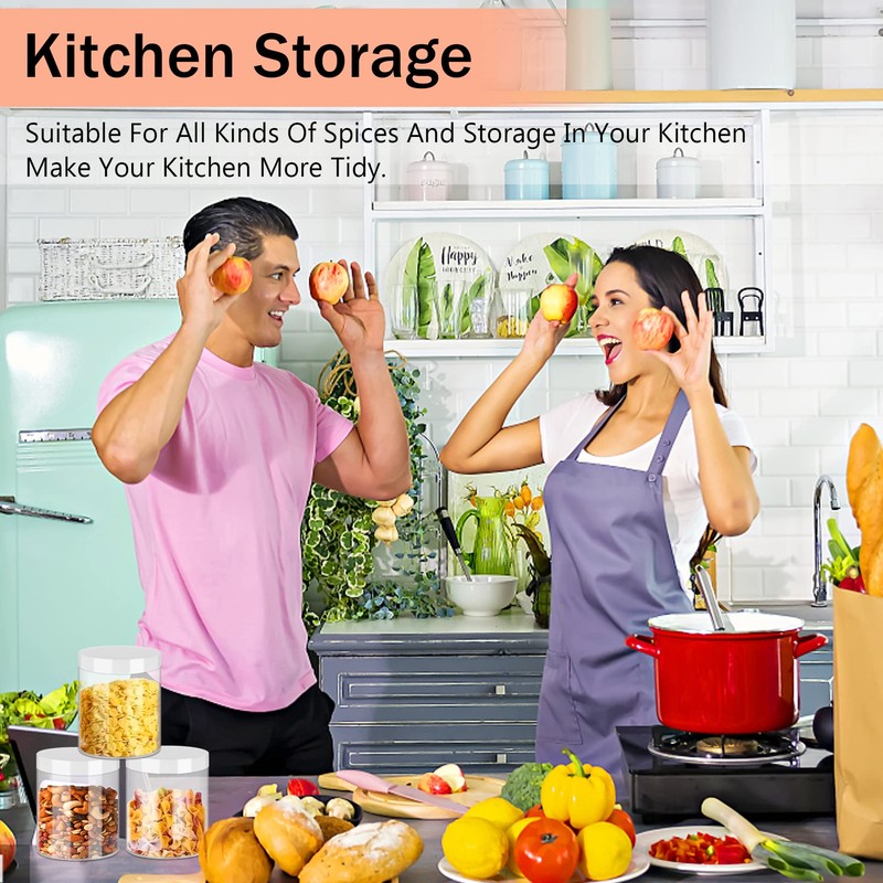 Our plastic food storage jars are very versatile, it can store nuts, pasta, biscuits, etc. Also suitable for storing body lotion, moisturizers, face masks, DIY slime light clay.You can also use the empty clear jars to store arts and crafts.Put different items into the storage jars and make the clear plastic mason jars more tidy on your cabinets.