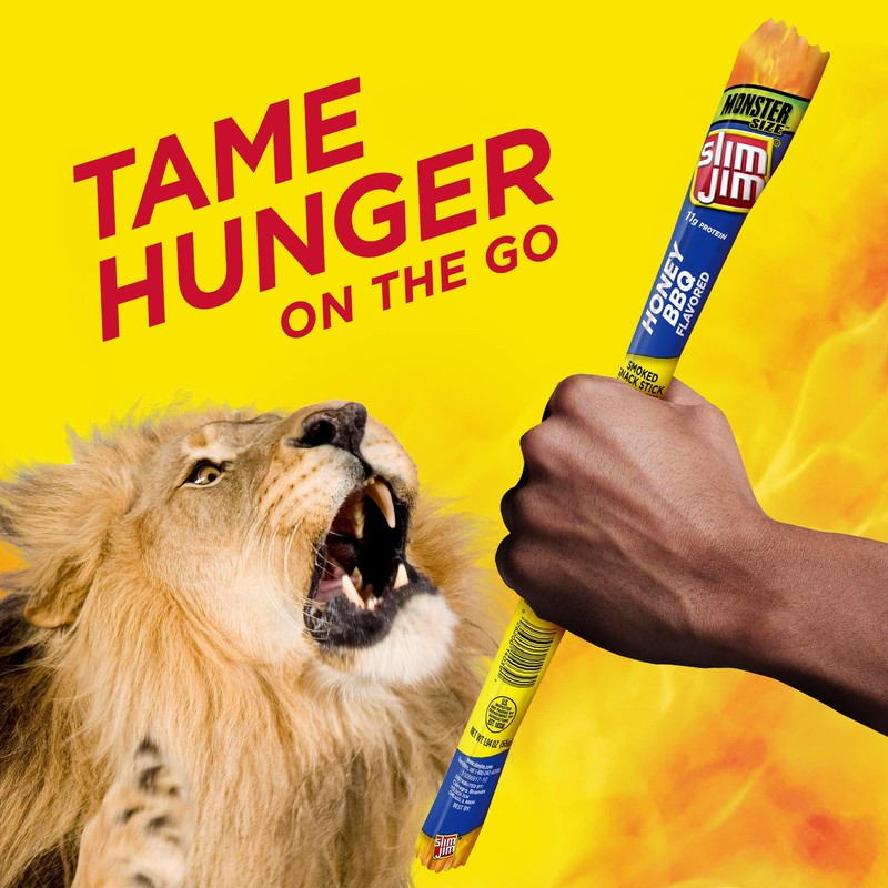 - Conquer your fears with the epically bold and wicked taste of Monster Size Slim Jim Meat Stick in Honey BBQ Flavor