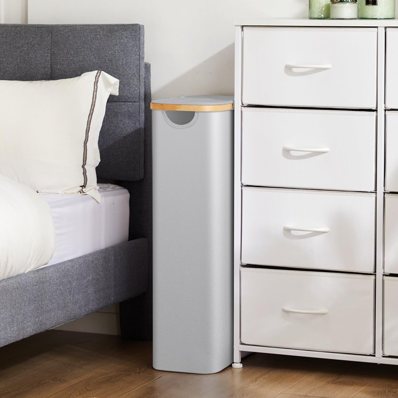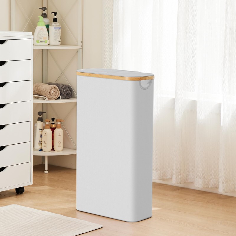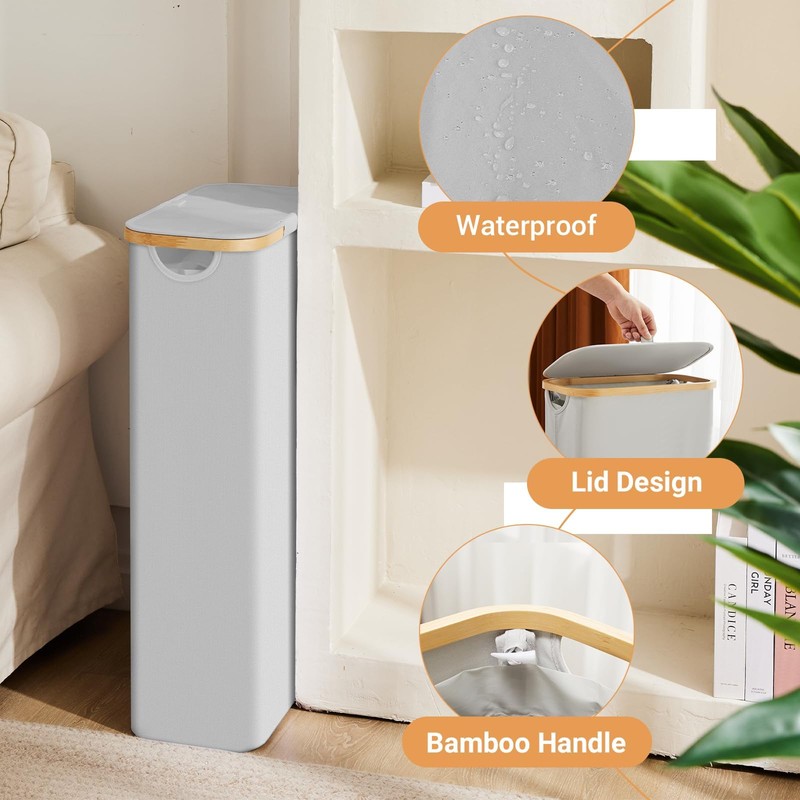 Slim Laundry Hamper with Lid by Fiona's magic, 63L Narrow Laundry Basket with Removable Bag, Grey Collapsible Dirty Clothes Basket, Thin Tall Storage Basket for Bathroom, Bedroom (Gray 2Pack)