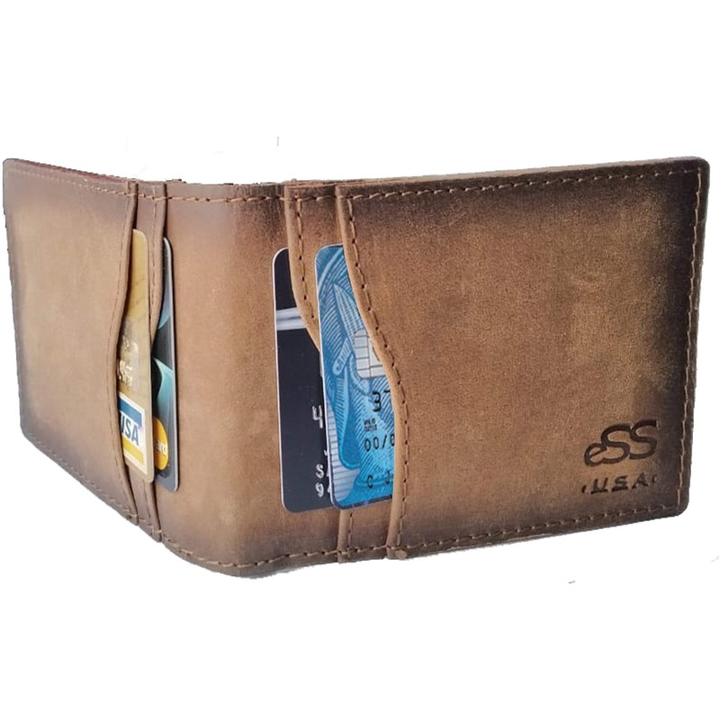 - PROVIDES STURDY GRIP FOR HOLDING few bills handy during travel with handcrafted leather wallet and removable Antic - money clip which securely hold your currency