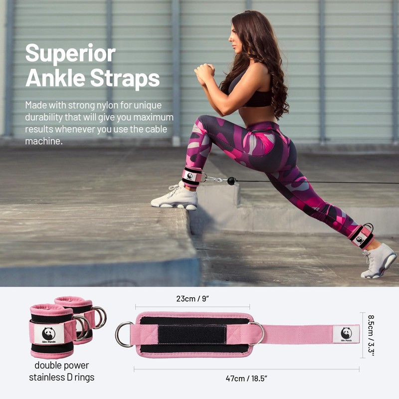 - 🐼Build Your Body: Cable ankle straps can be used as attachment with most standard gym machines, functional and resistance trainers. The perfect cable machine attachment for all your favorite glute and leg cable exercises, including glute kickbacks, hip abductors, lunges and more. Finally an ankle strap that is beautifully designed and gets results!