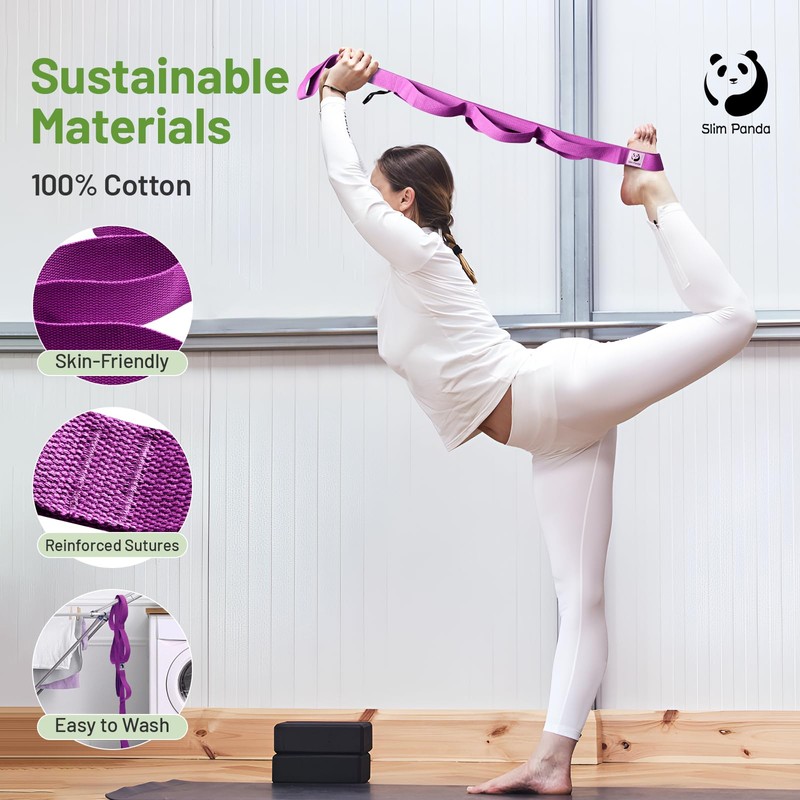 Slim Panda Stretching Strap with 10 Loops for Stretching, Pilates, Leg Stretch, Non-Elastic Yoga Strap with Exercise Guide Book, Yoga Stretch Strap for Physical Therapy, Flexibility, Gymnastics