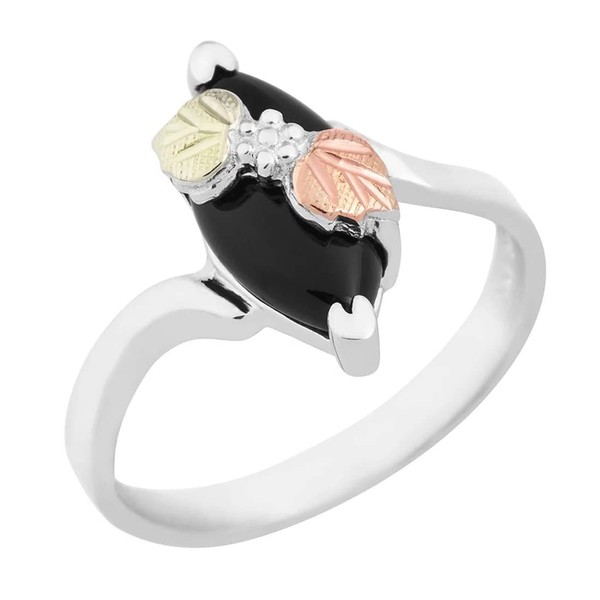 Slim-Profile Marquise Onyx Bypass Ring, Sterling Silver, 12k Green and Rose Gold Black Hills Gold Motif, Size 7