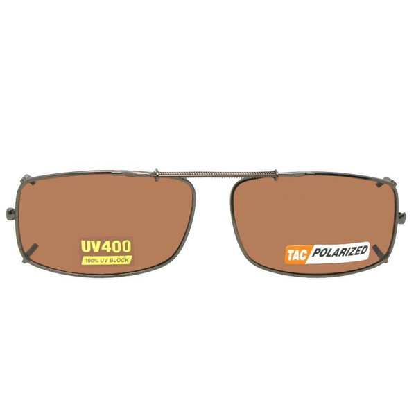 Slim Rectangle Polarized Clip On Sunglasses (Dark Bronze-Polarized Amber Lens, 60mm Width x 39mm Height)
