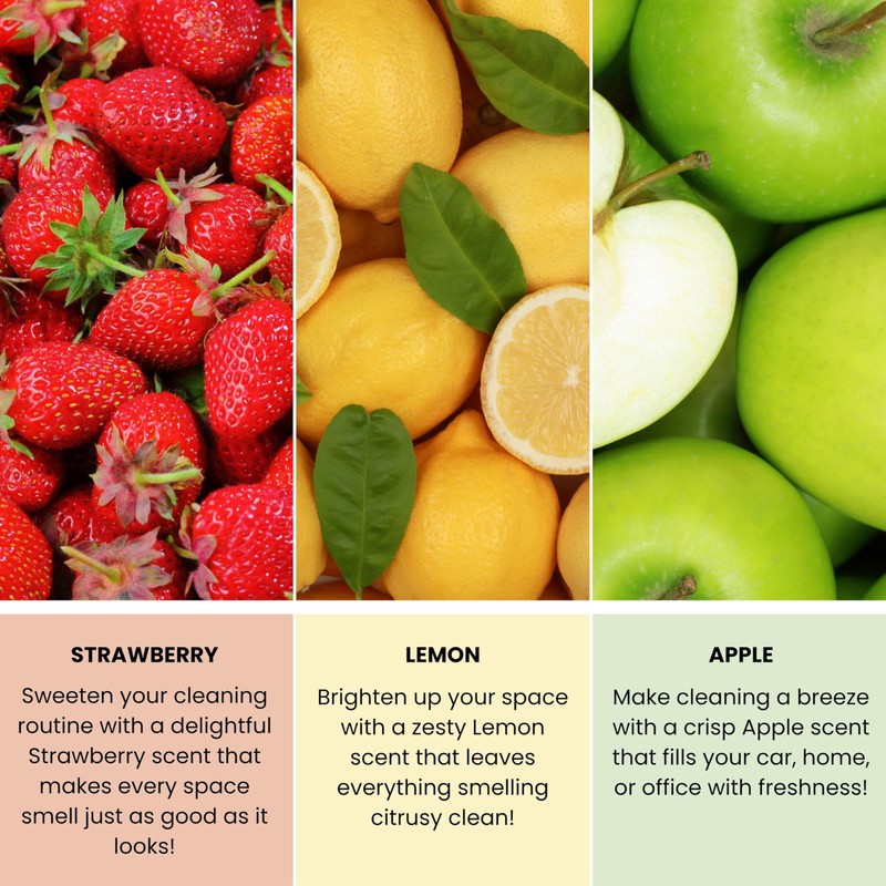 - 🍋🍏🍓 CAR CLEANING GEL - LEMON, APPLE, & STRAWBERRY SCENTED: Fresh and fruity scents with a flexible design to reach tight spaces like car vents, keyboards, and drawer corners, capturing dust and crumbs with ease while leaving a delicious fragrance.