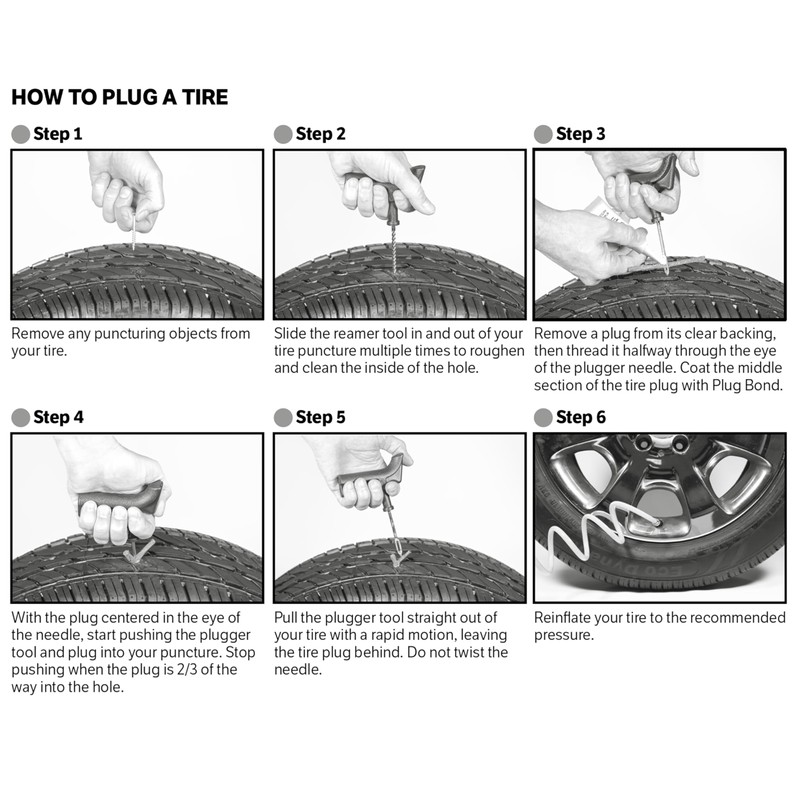 - Comfortable: A tire repair kit with an ergonomic, pistol-grip handle reamer and plugger tools can easily repair the hole