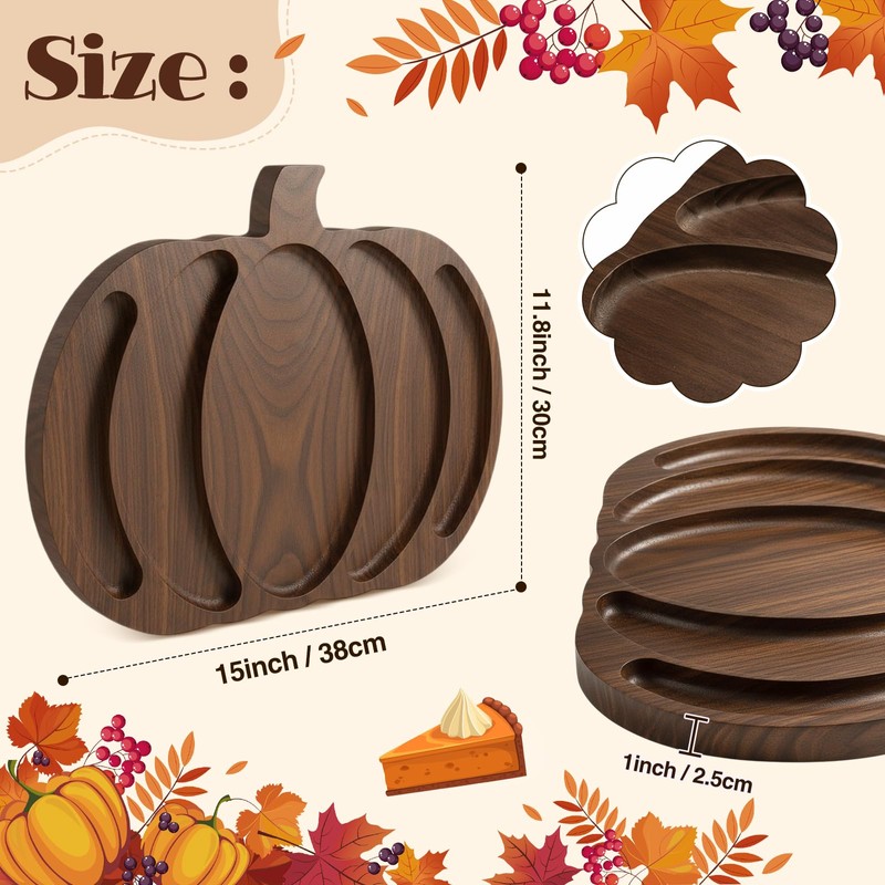 - Pumpkin Shape Design: wooden tray is designed with the pumpkin shape and 3 grids, exquisite and delicate Thanksgiving elements, which is a theme supply for indoor and outdoor Thanksgiving parties, can make you and your partners more joyful to enjoy the party