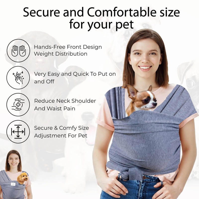 - Premium Quality: 95% Cotton: This Cat & Dog Sling Carrier is made from 95% soft and breathable cotton, providing a cozy and secure environment for your pet. Perfect for keeping your cat, puppy, or small dog snug while you enjoy a comfortable and form-fitting design.