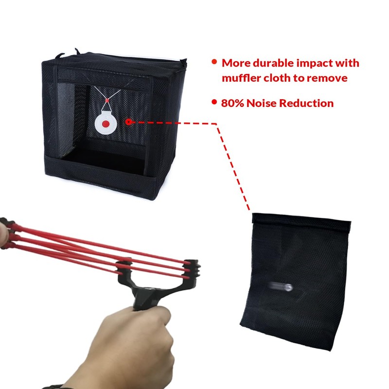 - Sound-proof design, strong impact resistance, reduce noise when shooting, won't disturb others, and the built-in widen velcro makes the target box more stable when shooting, Package Included: 1x Target Box , 1x Assembly instructions and 2x Assorted Size Slingshot Target.
