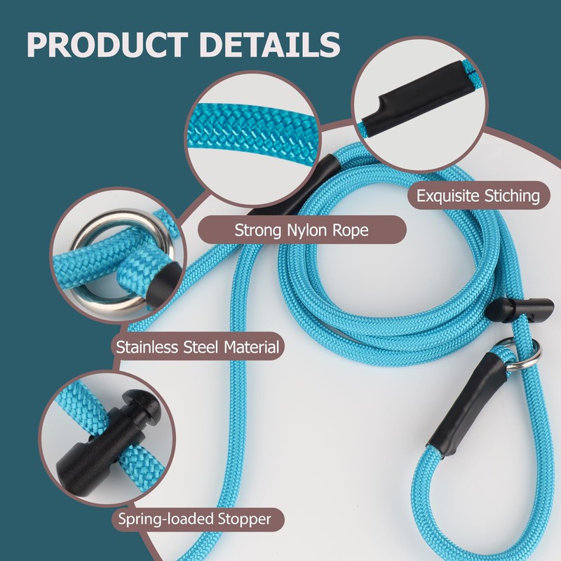 - 【Heavy-Duty & Durable Design】Crafted with 5/16" thick, high-strength nylon rope, this slip lead is built to handle even the strongest pullers, long-lasting, it’s ideal for daily walks, training, or professional use.