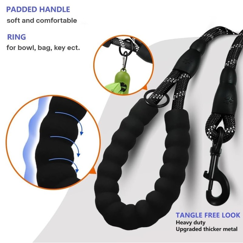 - Comfort padded handles. Features soft padded handles for amazing comfort, just enjoy the feeling of walking your dog and protecting your hand from rope burning.