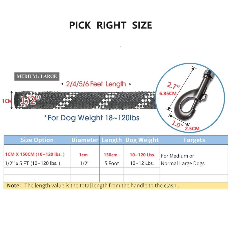 - Heavy duty construction: made from ultra-strong 1 cm diameter nylon climbing rope, paired with a durable metal clip hook for secure connections. Designed to endure hundreds of pounds of pull to ensure your dog's safety and reliability during walks.