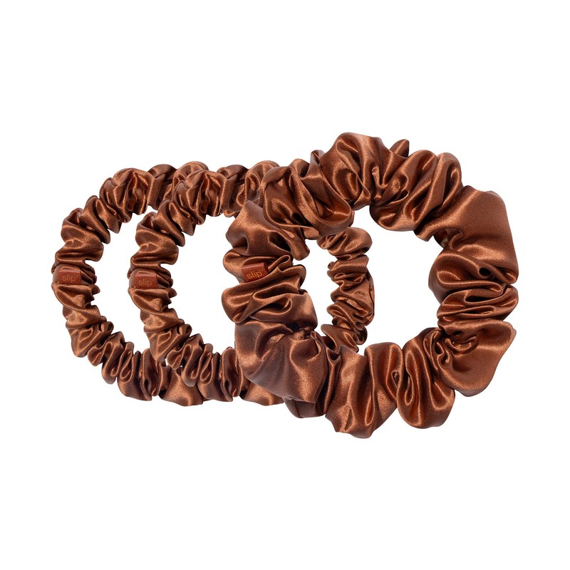 SLIP Pure Silk Back to Basics Assorted Scrunchies - Auburn, 3 Count - 100% Pure 22 Momme Mulberry Silk Scrunchies for Women - Hair-Friendly + Luxurious Elastic Scrunchies Set