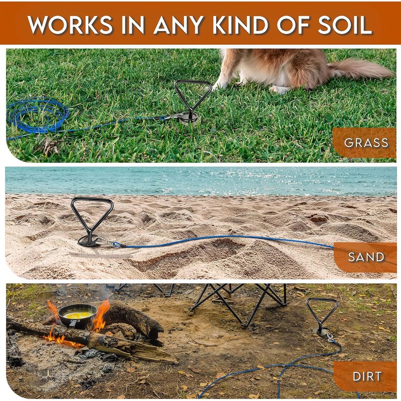 • EASY TO INSTALL AND EASY TO USE : You can insert it into the ground with a few simple turns. The sharp curved helix ground slides easily over the soil. When you encounter a hard object-----This dog anchor is designed with unique handle, Easy to grip and screw into the ground, no other tools required.