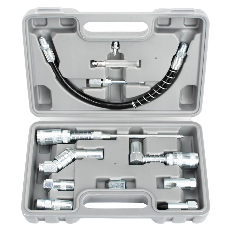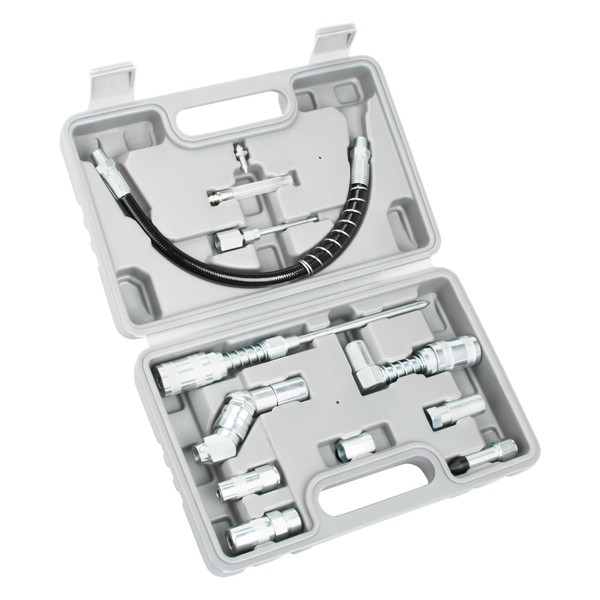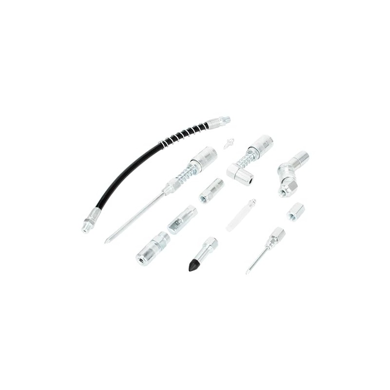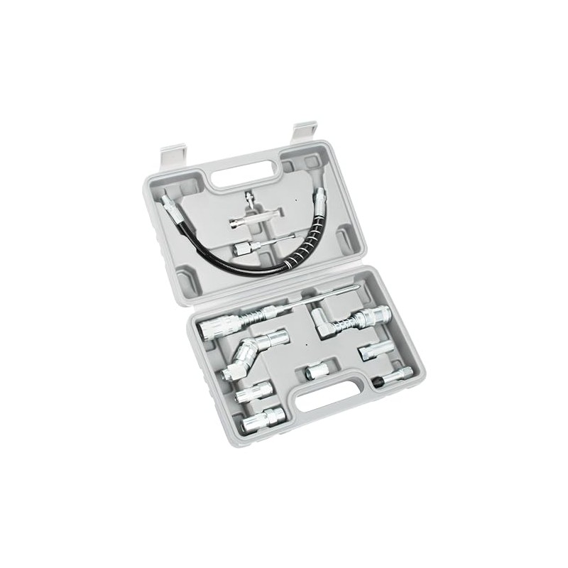 sliyxtwio Grease Gun Accessory Kit, 12 Piece Grease Gun Coupler Set for Hard to Reach Grease Fittings, Heavy Duty Lubrication Grease Zerk Fitting Adapters with Grease Gun Hose Holder