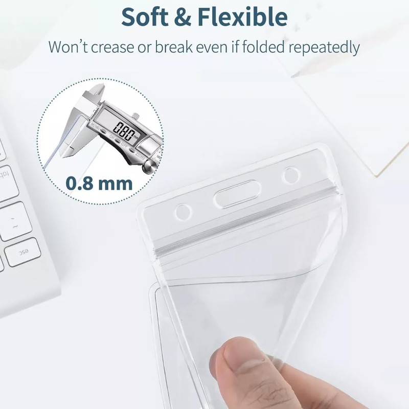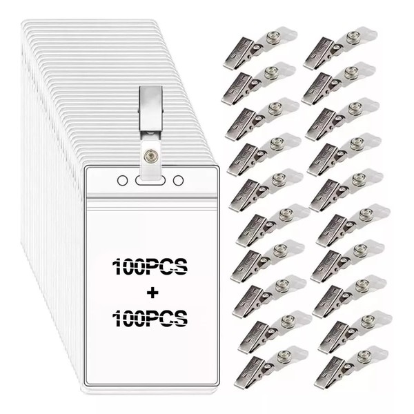 SLNXA Kit de 200 Porta Credenciales Verticales con Soporte Transparente y Clips de Metal