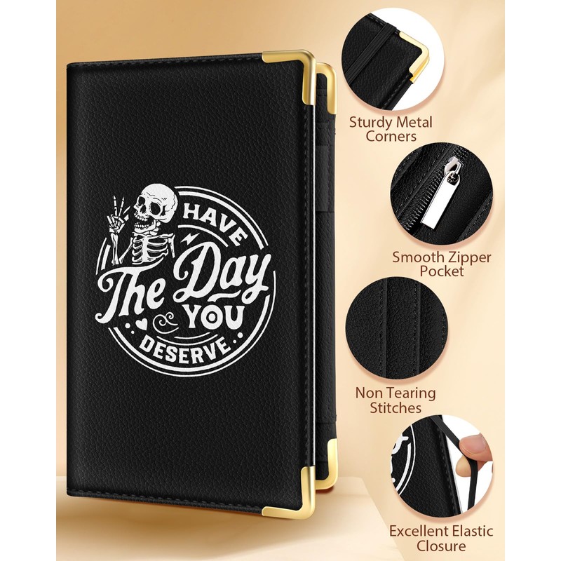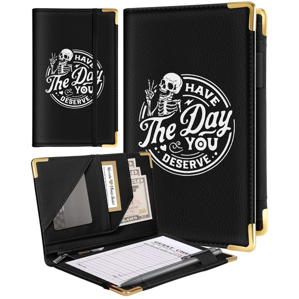 Slohif Slohif Server Book for Waitress Cute Serving Books with Zipper Pocket Accessories Leather Server Check Book Restaurant Waiter Server Booklet Organizer Ticket Book Holder Skeleton