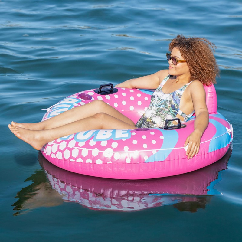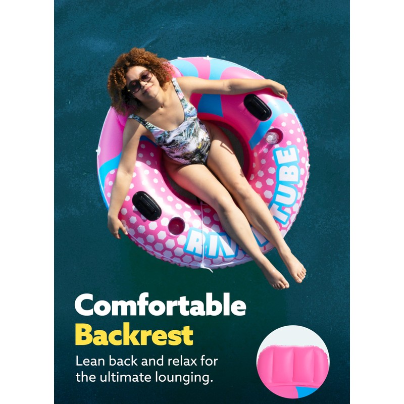 Sloosh Inflatable River Tube Float - XL 53 Inches Heavy Duty River Run Lake Floating Chair Floaties Adults Sports Fun, Large Pool Floats Raft Water Tubes Lounger with Cup Holders Mesh Bottom (Pink)