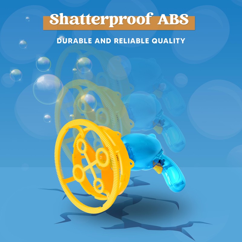 - HIGH QUALITY: Crafted from shatterproof ABS material designed to be leakage-proof, our Whale Bubble Gun ensures a high-quality and long-lasting bubble-blowing experience without the worry of sticky residues or stains.